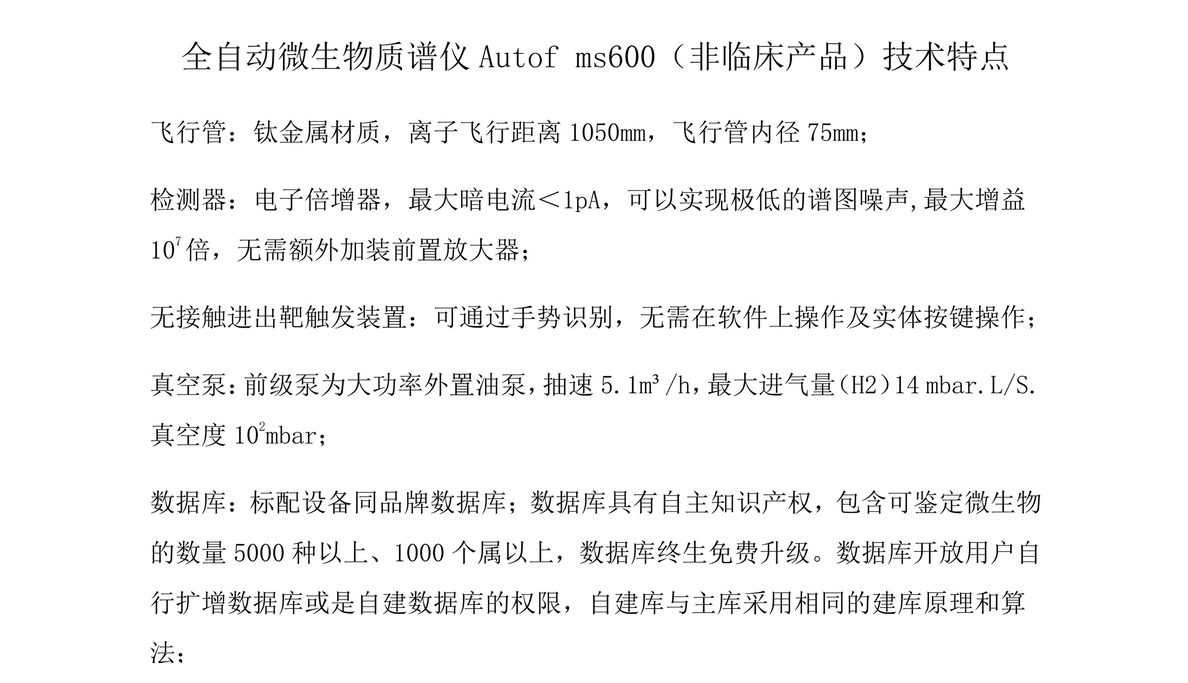 是一台为中国用户量身定做的基质辅助激光解析电离飞行时间质谱仪,不仅可以实现细菌、酵母菌、丝状真菌、隐球菌、分枝杆菌等纯菌的快速鉴定,也可以使用处理试剂盒进行血培养阳性瓶的处理鉴定,还拥有超过5000菌种数据的中国本土化微生物数据库,使得微生物鉴定工作更加快速、简单、准确,大大提高了实验室的工作效率。
