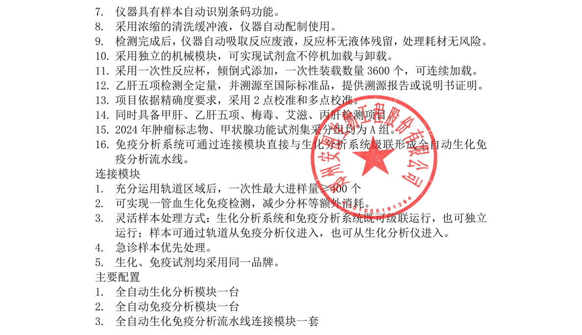 与同配置的传统流水线相比,节省60-80%的空间;1-4台免疫生化检测仪器任意组合;可实现一管血检测方案,优化检测流程,缩短TAT时间。
