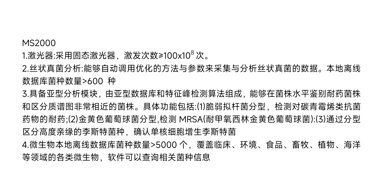 软件 具有独特的快速鉴定模块,单个样品0.1秒内即可得到鉴定结果;提供专业的菌株中文名称,无须翻译,国内用户使用更方便。